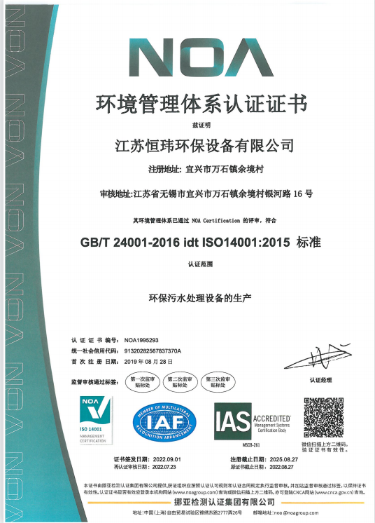 ISO14001環(huán)境管理體系認證證書